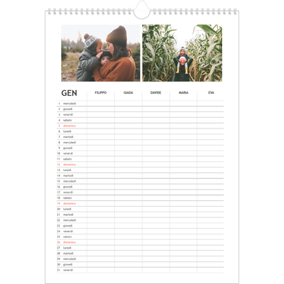 Calendario semplice - Famiglia di 5