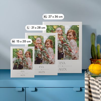 Questo fotolibro XL attira subito l'attenzione sul tuo tavolino. Perfetto per esporre i tuoi ritratti e farli risplendere.